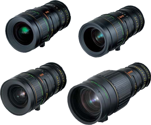 Линейка объективов E Zoom из четырех изделий с фокусными расстояниями 5-15; 6-30; 10-100; 9,5-114 мм.