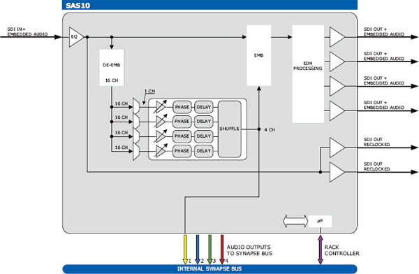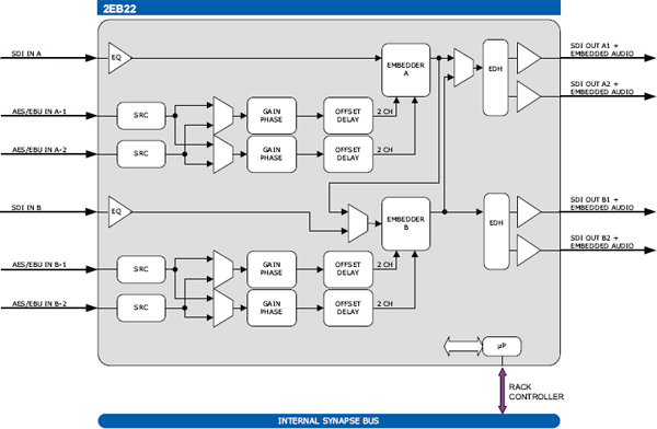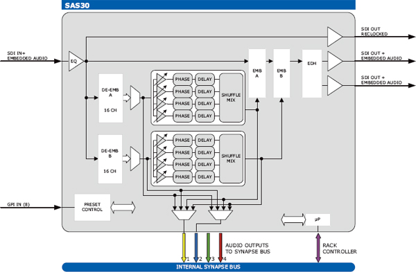 Блок обработки внедренного звукового сигнала (своппинг звуковых каналов, усиление, корректировка фазы, задержка)