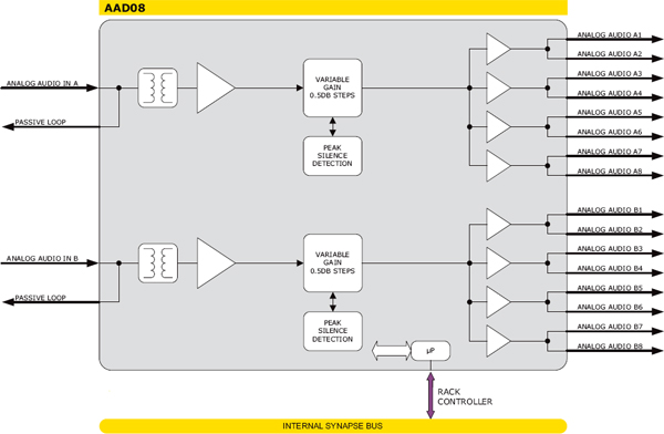 Двухканальный усилитель-распределитель аналогового звука 1х8